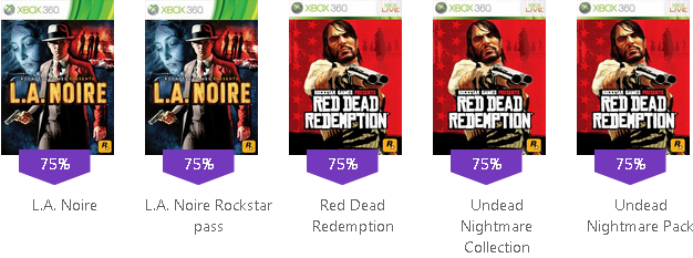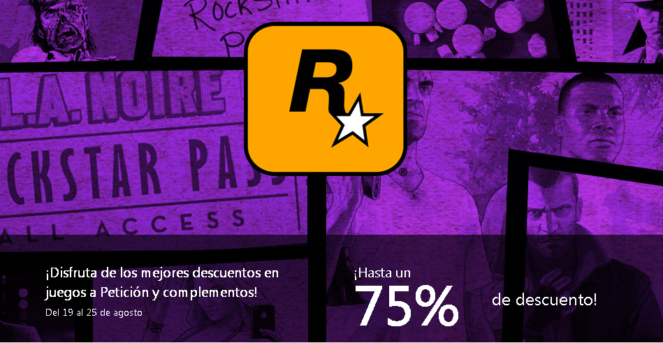 Del 19 al 25 de Agosto podrás disfrutar de los mejores descuentos en juegos a petición y complementos provenientes de Rockstar, se espera un aumento de ventas con esta acción y se estima que las compras subirán como nunca antes, los precios de estos productos no suelen ser algo muy común por que las ventas especiales son eso, especiales así que si tu siempre has querido tener el Grand Theft Auto, L.A. Noire entre otros juegos en promoción es tu oportunidad para conseguirlos, obviamente los productos no son físicos así que puedes descargarlo vía internet en tu consola Xbox 360 ó Xbox One (Sólamente si está disponible el juego para esta.